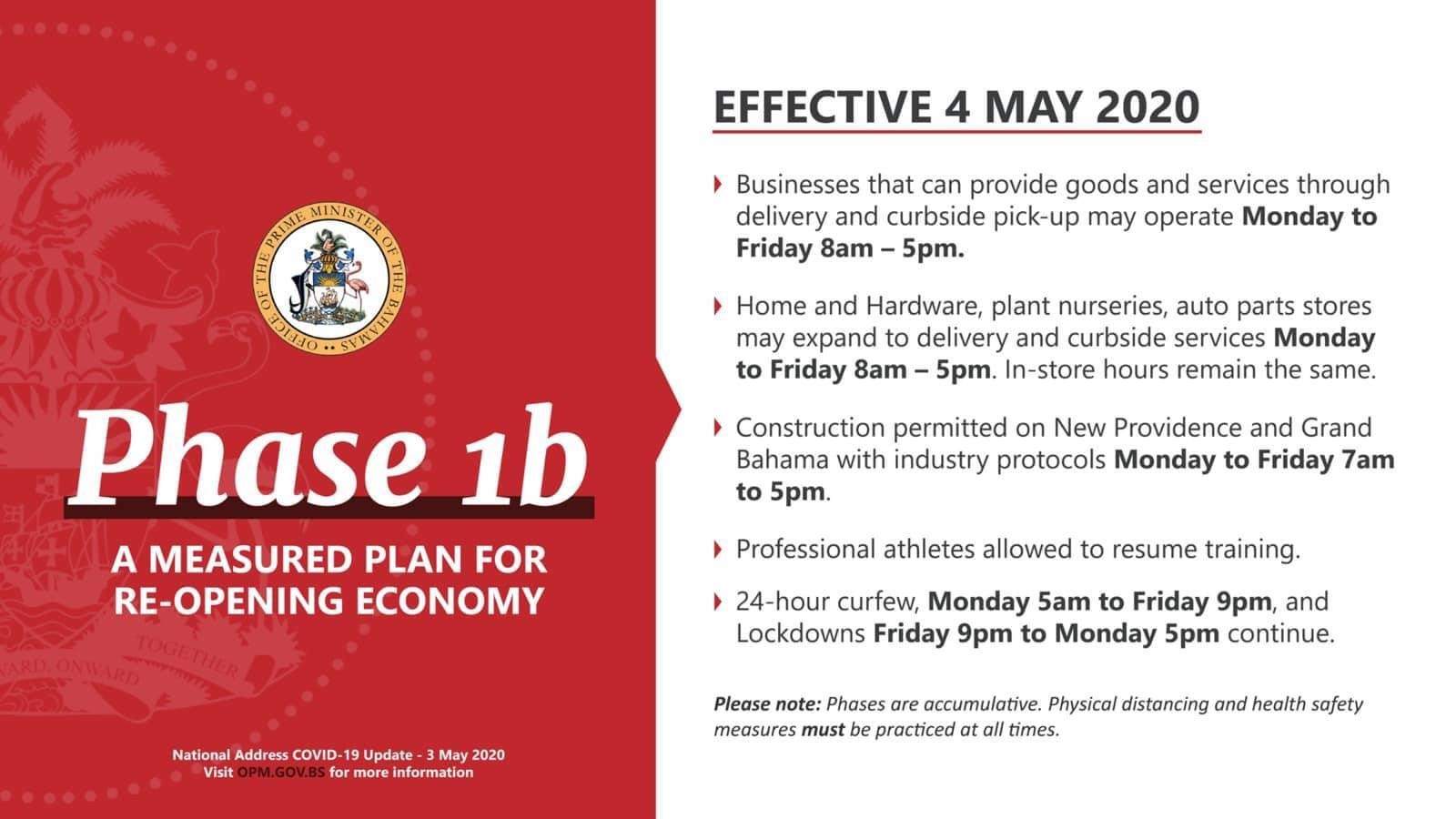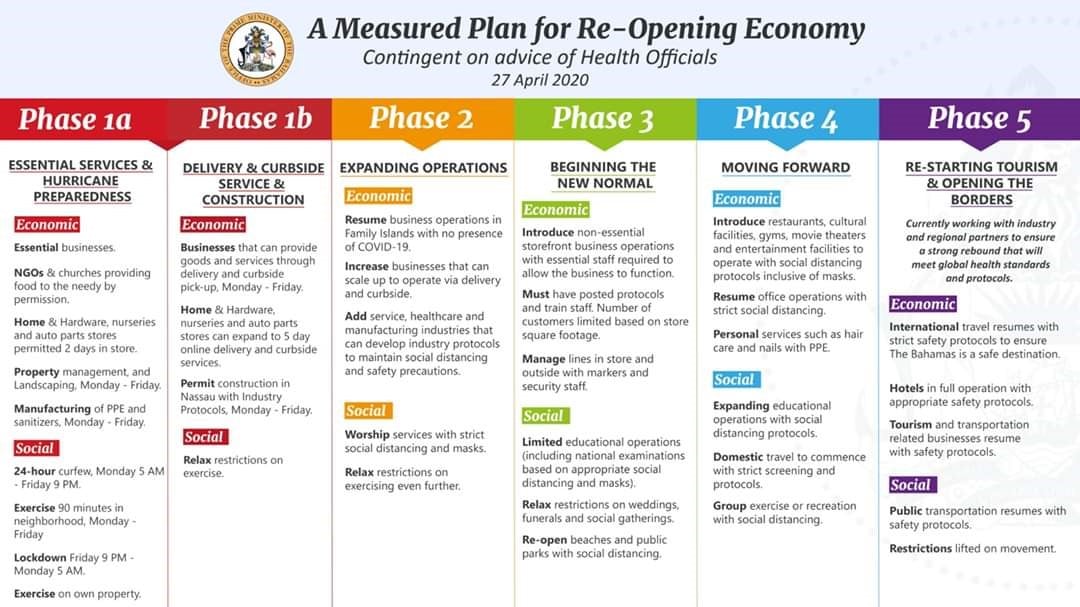 Prime Minister Minnis further provided an update to the country’s phased approach to returning to normal.  The phased approached was first introduced on April 27th, 2020.
