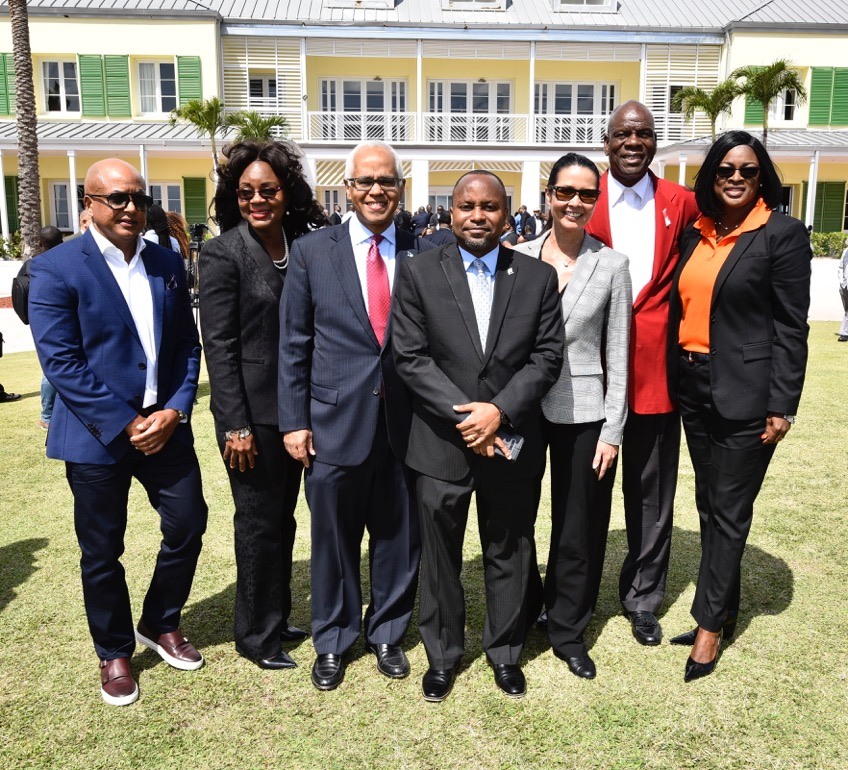 L-R: Sean Basden, Taino Beach & Flamingo Resorts – Director, Meshell Britton – Manager, GBITB, Minister of Tourism, Dionisio D’Aguilar, Minister of State, J Kwasi Thompson, Suzanne Pattusch, Executive Director, BHTA, Hadley Forbes, H. Forbes Charter- Director and Carmel Churchill, Marketing Consultant